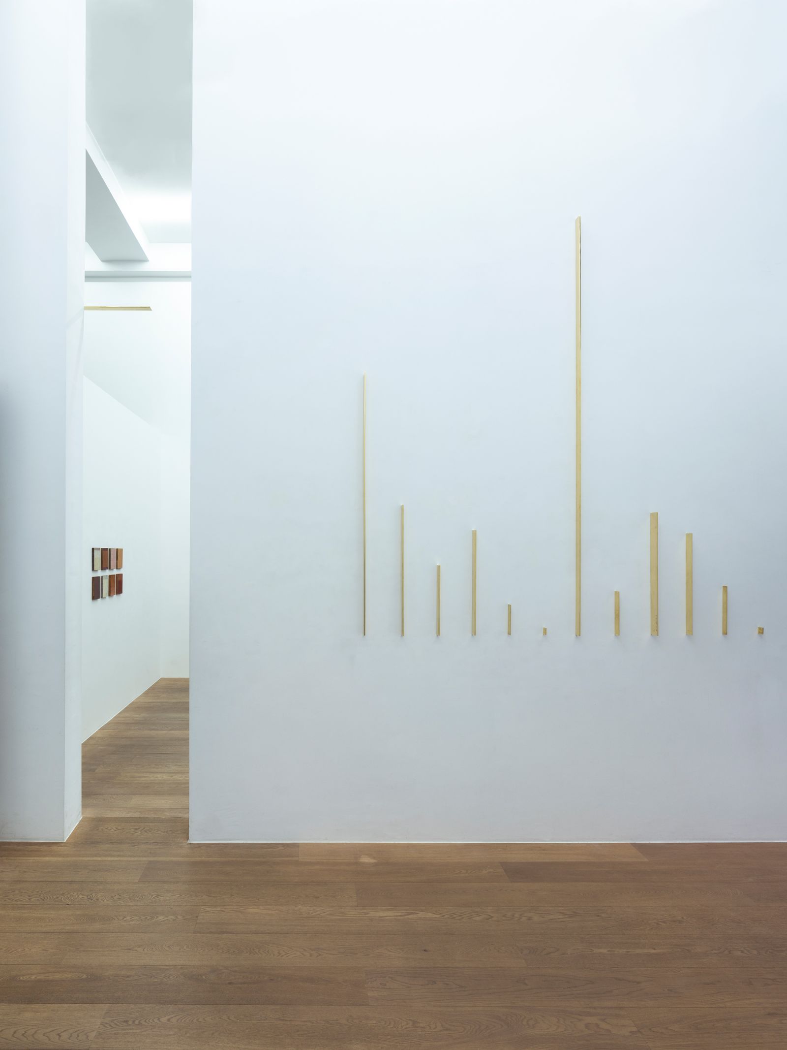 Avec LA MARIEE IRA MAL*, Jean-François D’Or interpelle et transforme l’architecture de la galerie. À travers des lignes de laiton poli qui soulignent les contours du lieu, l'artiste structure l'espace à la manière d’une ponctuation sur une page blanche. Ces bandes élancées, tour à tour horizontales et verticales, agissent comme des « virgules murales » invitant l’œil au repos et à la contemplation.